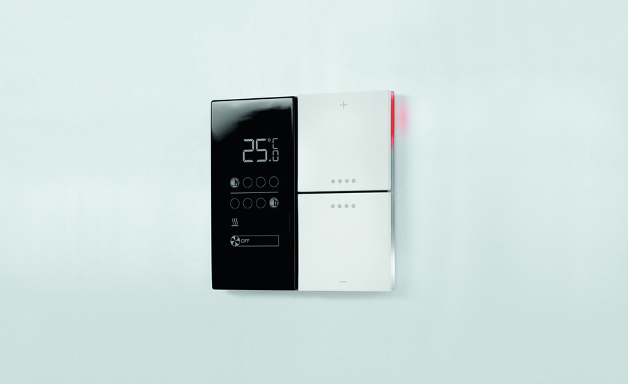 The FF series has a plastic, metal or Fenix NTM® range of pushbuttons, thermostats, touch-displays, plates for sockets and integrated LEDs with adjustable light intensity in blue/green or white/red colour combinations. The different finishes can be freely combined with each other and declinable in FORM, FLANK, 'NF, DEEP and SURFACE lines.